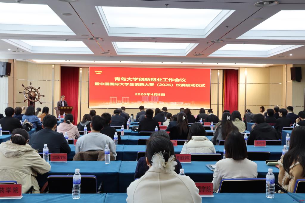 新闻网讯 4月8日下午,青岛大学创新创业工作会议暨中国国际大学生创新大赛(2026)校赛启动仪式在会议中心404举行。校党委常委、副校长刘恩贤出席会议并讲话,创新创业学院党委书记肖建红主持会议。相关职能部门主要负责人,各学院创新创业工作分管领导、创新大赛联系人,指导教师代表、学生代表等参加会议。