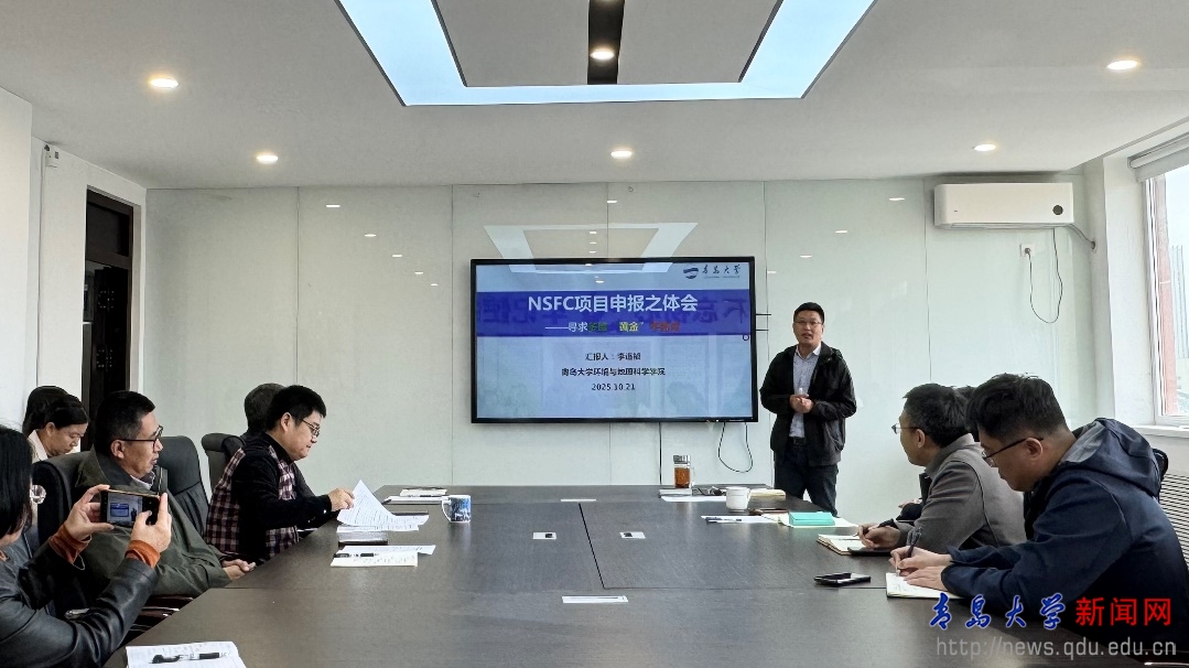 新闻网讯 10月21日上午,环境与地理科学学院在浮山校区博观楼会议室召开科研工作专题会议暨2026年国家自然科学基金申报辅导会。环境与地理科学学院党委书记张作祥、院长佘希林、副院长孔范龙、赵宗山以及学院专任教师参加本次会议,科技处挂职教师郑晓钦到会指导。会议由孔范龙主持。