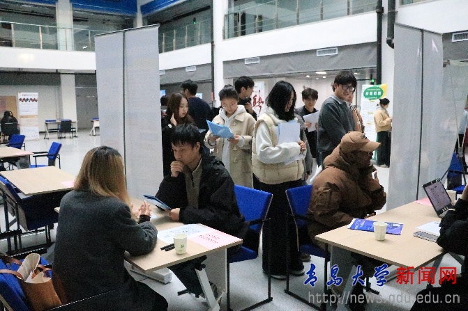 新闻网讯 11月20日下午,纺织服装学院2026届毕业生就业供需双选会(第二场)在新纺织大楼B座顺利举行。本次双选会汇聚了孚日集团、青岛海森林发制品、中达科盛、江苏自然风集团、青岛克罗斯等20家行业知名企业,岗位覆盖纺织服装、贸易、教育等多个领域,为毕业生提供了丰富多元的就业选择。