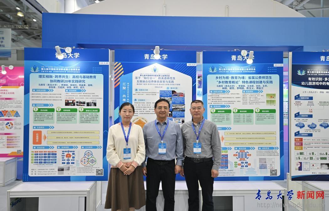 教育科学学院共有三项教育创新成果与会参展,分别是马勇军教授领衔主持的《理实相容·跨界共生:高校与基础教育协同教研 20年实践》《乡村为根·乡教为魂:公费师范生“乡村教育概论”特色课程创建》和王芳教授领衔主持的《有效识别·多元支持·深入拓展——幼儿园游戏中的有意义学习研究与实践》。