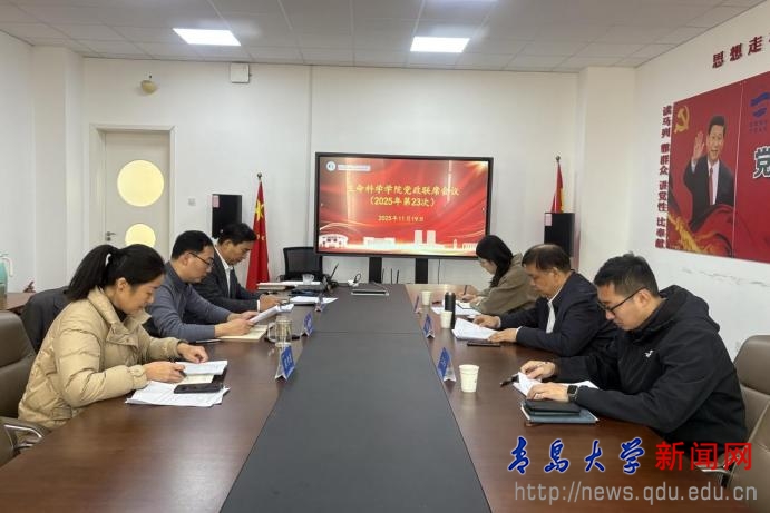 党政联席会议由学院院长孙海新主持。会上,研究通过了《青岛大学生命科学学院标志性教学成果培育办法(试行)》、《青岛大学生命科学学院教职工荣誉奖励管理办法(试行)》、《青岛大学生命科学学院农业科学ESI期刊投稿激励制度》、《青岛大学生命科学学院学术交流繁荣行动计划实施方案》等四个文件。