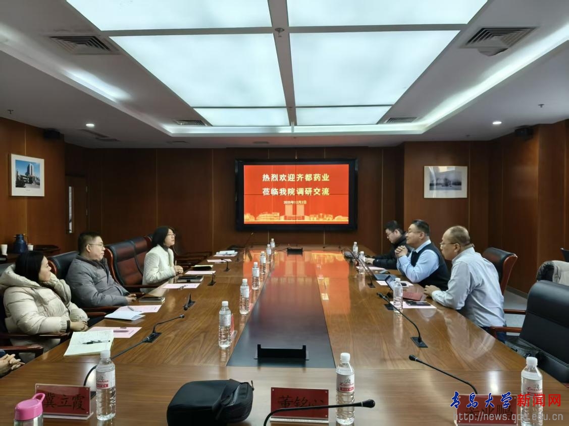 新闻网讯 12月2日下午,药学院与齐都药业校企合作交流座谈会在浩园医学教育综合楼A110会议室成功举行。齐都药业研究院执行院长任文刚、副院长兼注册医学与科技合作部部长张涛、副院长兼科技信息与项目管理部部长于康,青岛大学药学院院长孙勇、党委副书记雷舒涵等党政领导班子成员、各学系主任及教师代表参加。会议由孙勇主持。