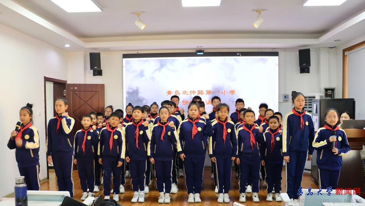 研学之旅以“校园探趣”拉开序幕。在文传学院志愿者的讲解下,北仲路第一小学的师生们先后参观了青岛大学图书馆、百汇园及孔子像等标志性场所,感受大学校园的学习氛围与文化魅力。