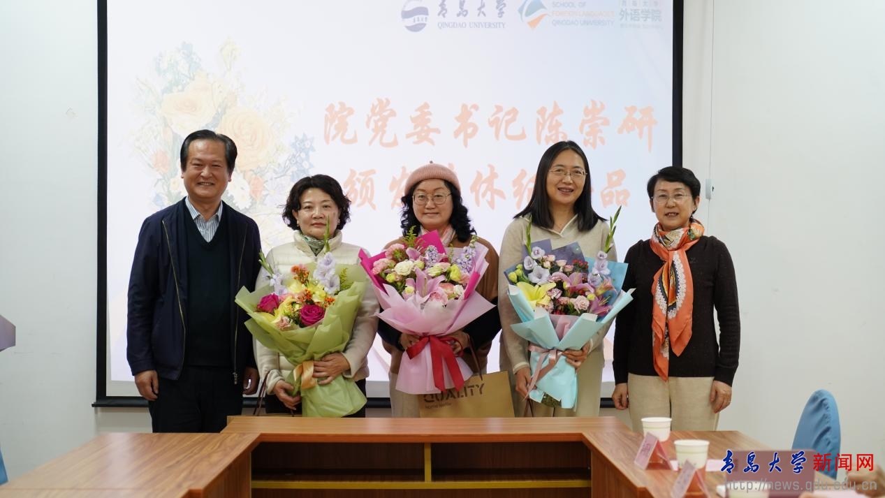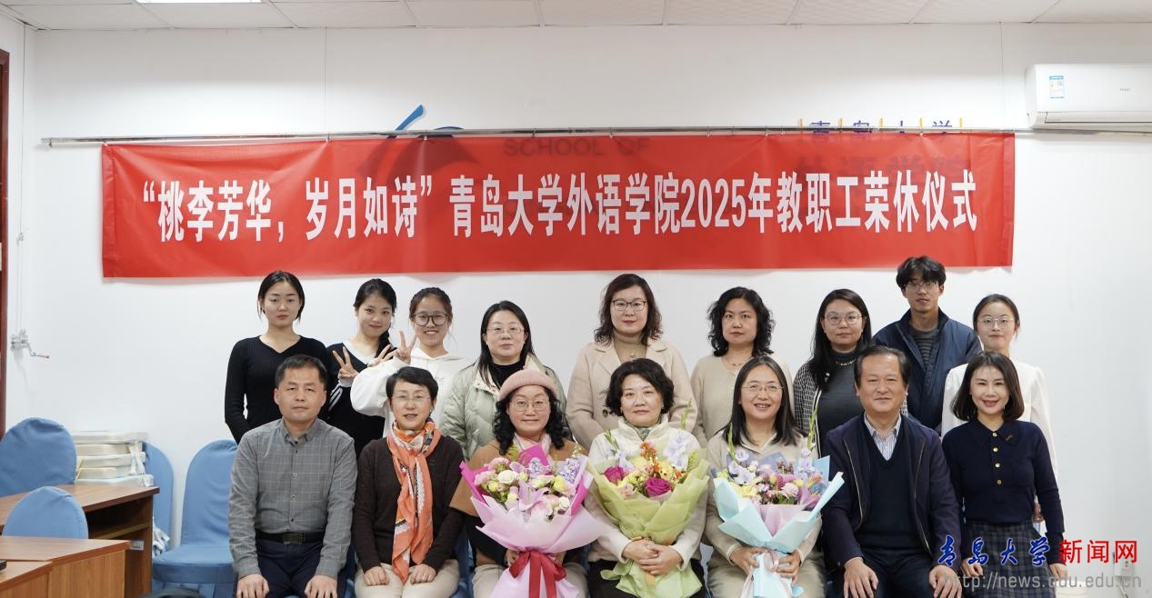 新闻网讯 1月14日下午,外语学院在浮山校区博文楼312室举行“桃李芳华,岁月如诗”2025年退休教师荣休仪式,向光荣退休的陈黎、宋蕾、王谦三位老师致以崇高敬意与美好祝福。外语学院党政领导班子以及师生代表共同参加本次仪式。仪式由外语学院党委副书记于苗主持。
