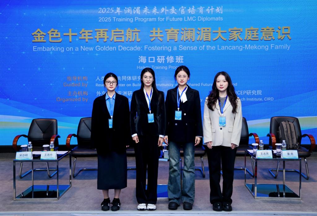 2025年12月13日至17日,我院2025级国际关系专业研究生刘俞含,2023级国际政治专业本科生杨佳辰、孙惠琪、尤玥霏一行赴中国(海南)改革发展研究院参加2025年澜湄未来外交官培育计划——“金色十年再启航 共育澜湄大家庭意识”海口研修班。本次研修班由外交学院人类命运共同体研究中心指导,外交学院亚洲研究所与中改院RCEP研究院共同主办。本次项目由来自中国国际问题研究院、中国国际减贫中心、商务部国际贸易经济合作研究院、北京协和医学院、清华大学、北京大学、复旦大学和外交学院等机构的近25名专家进行授课。