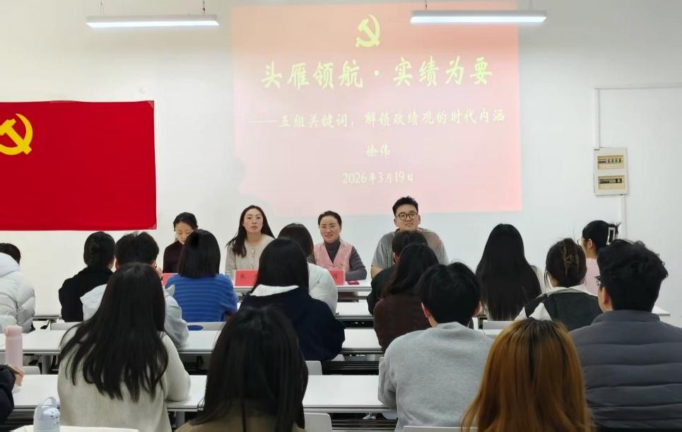 新闻网讯 为深入学习习近平总书记关于树立和践行正确政绩观重要论述,筑牢学生党员思想根基,政治与公共管理学院学生党支部于3月19日在二号实验楼405室举行“头雁领航·实绩为要——五组关键词,解锁政绩观的时代内涵”专题党课。学院党委副书记徐伟主讲,学生党支部书记张伟、辅导员老师王嘉伟、商玉坤及学院全体学生党员参加。